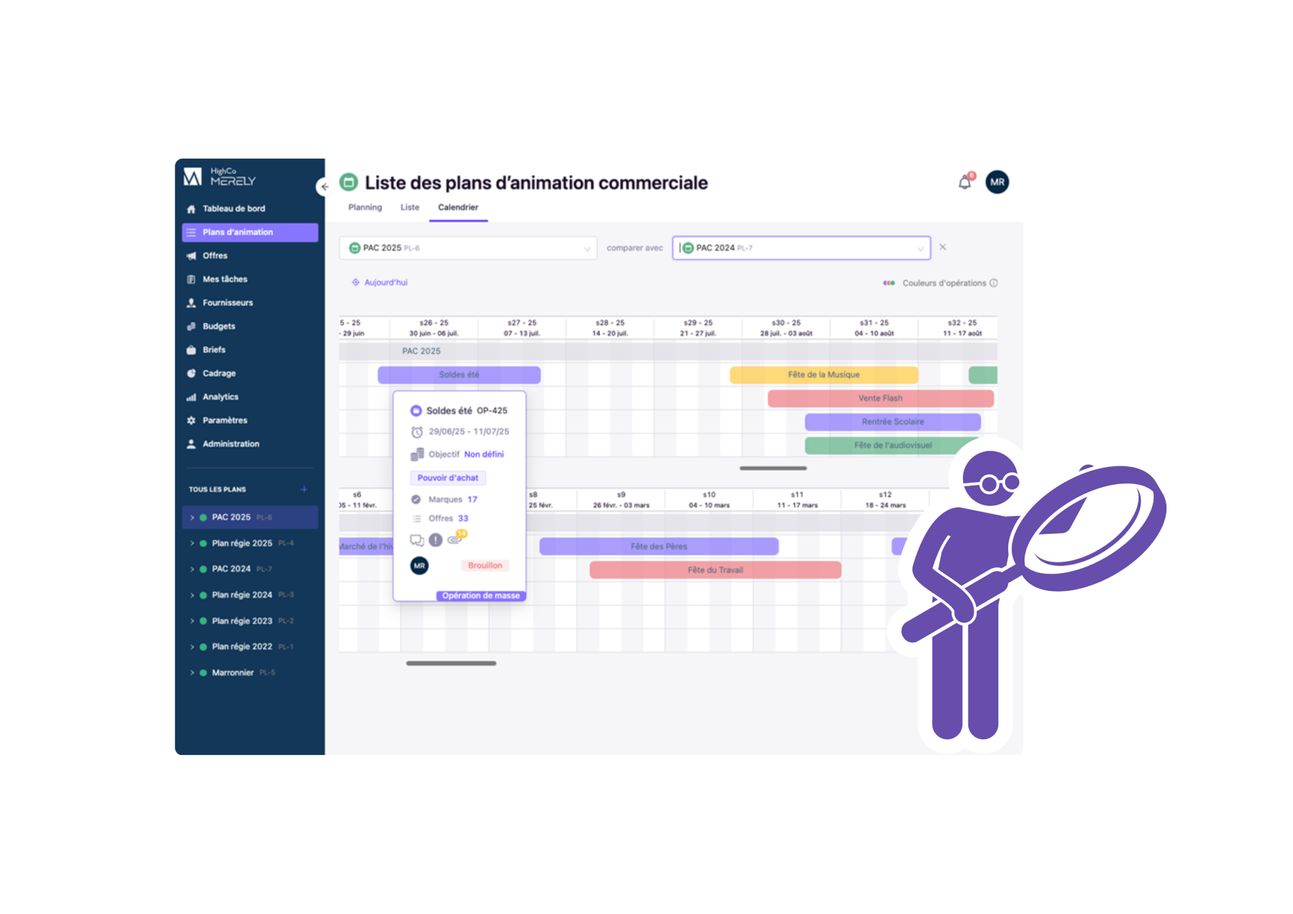 Les parts de marché, le panier moyen, les fréquences d’achat des clients, le volume d’offres, les types d’opérations et l’impact sur le chiffre d’affaires. Avec HighCo Merely, ces indicateurs sont à portée de main !